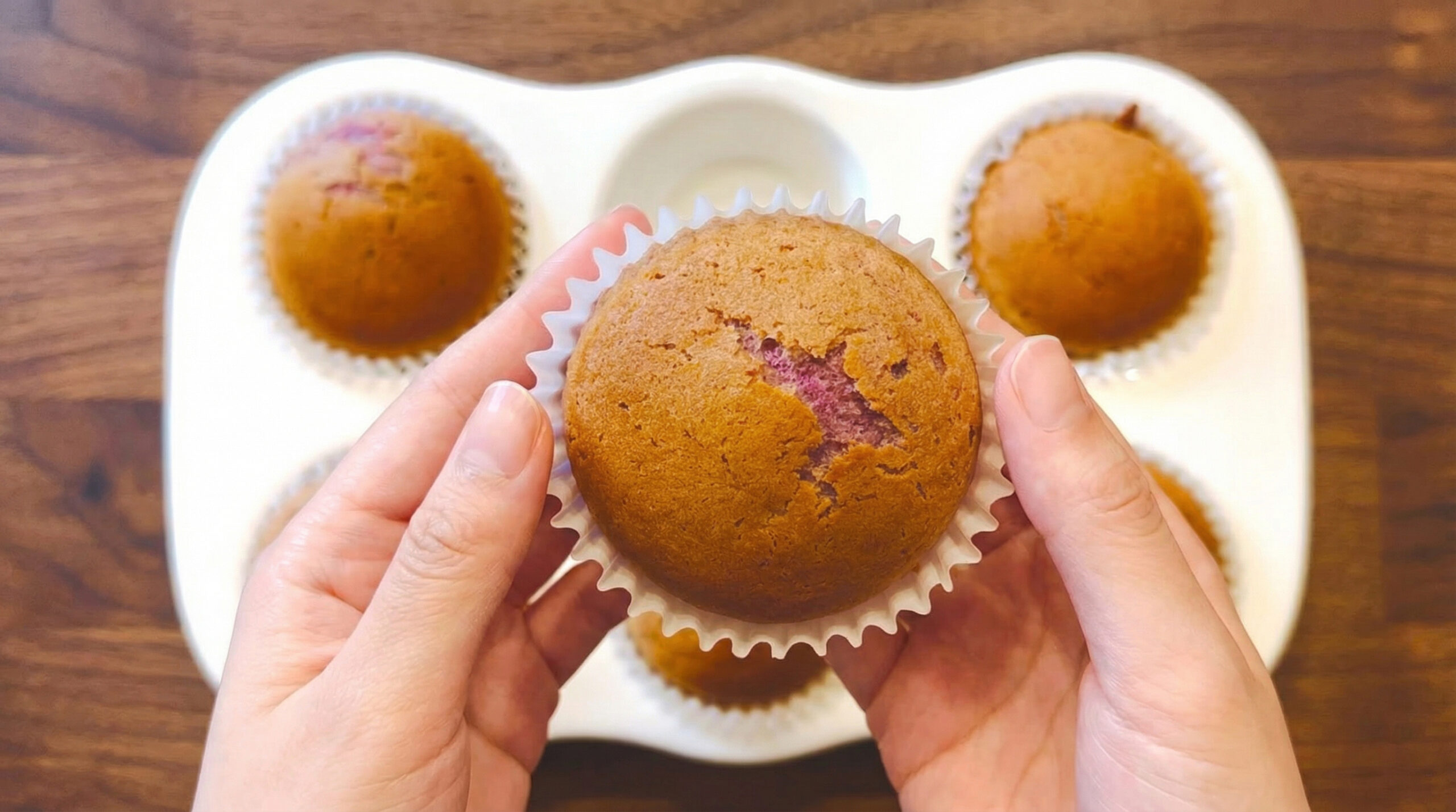 👉🏻 Check out our easy Sugar-Free Red Bean Paste recipe blog. - Muffins rise soft and tender, with a golden exterior and signature mochi bounce.